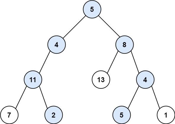 输入: root = [5,4,8,11,null,13,4,7,2,null,null,5,1], targetSum = 22